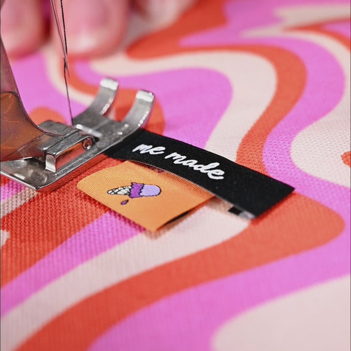 This side seam label is ideally sewn into the garment (either inside or displayed visibly) by inserting into a seam allowance or facing.
